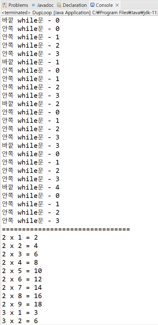 DupLoop.java 실행 결과